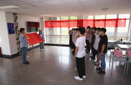 组织在校党员在北苑八号楼图灵学舍举行了党员重温入党誓词活动。在研究生第二党支部书记权天祺同学的领誓下,全体党员面对鲜红的党旗,高举右拳,字字铿锵,重温入党誓词,在党旗前庄重宣誓,宣誓仪式是庄严神圣的一课,始终铭记入党的誓词,对党员自身更是一种鞭策和激励。