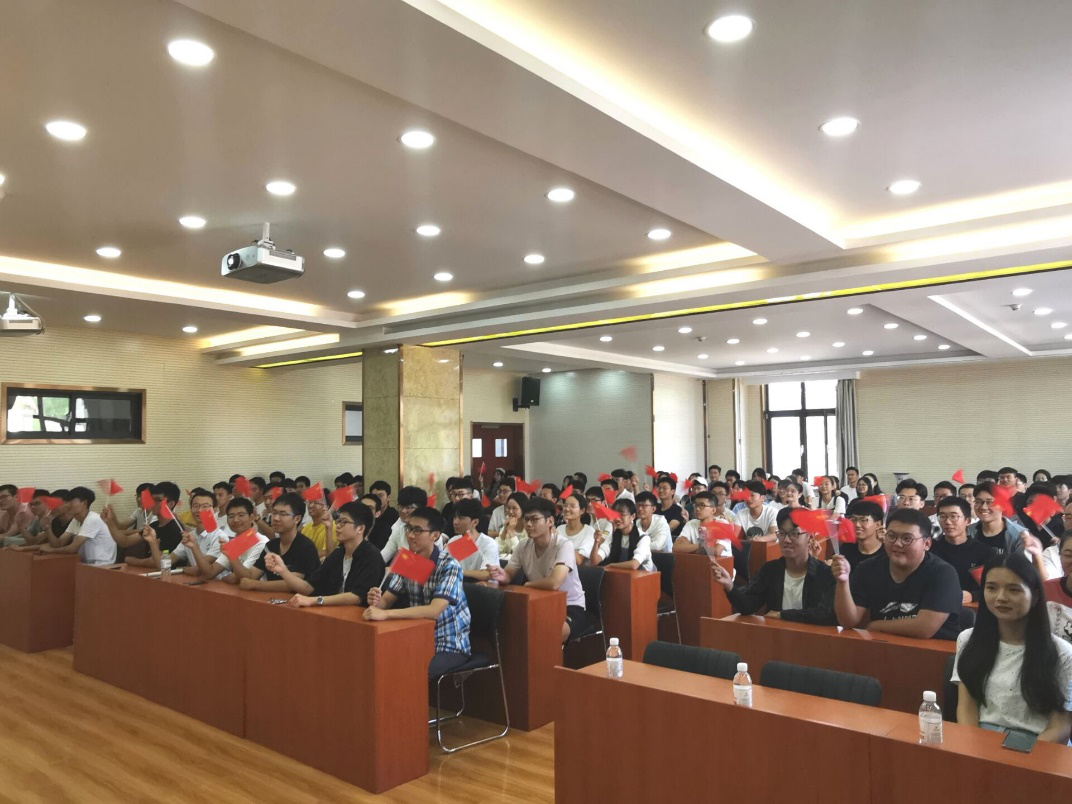 会场红旗飘扬,欢呼声,鼓掌声络绎不绝。全体师生起立,共同注视着大屏幕,怀着对祖国的深深热爱,共同唱响中华人民共和国国歌,迎接这一庄严时刻的到来。在场师生认真聆听了习近平总书记的重要讲话,并观看了阅兵式及群众游行活动,师生们手举国旗,内心充满着自豪与喜悦,共同祝福祖国繁荣昌盛。